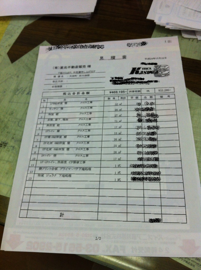 任意売却で買取させて頂いた、中古住宅の見積が送られてきました。