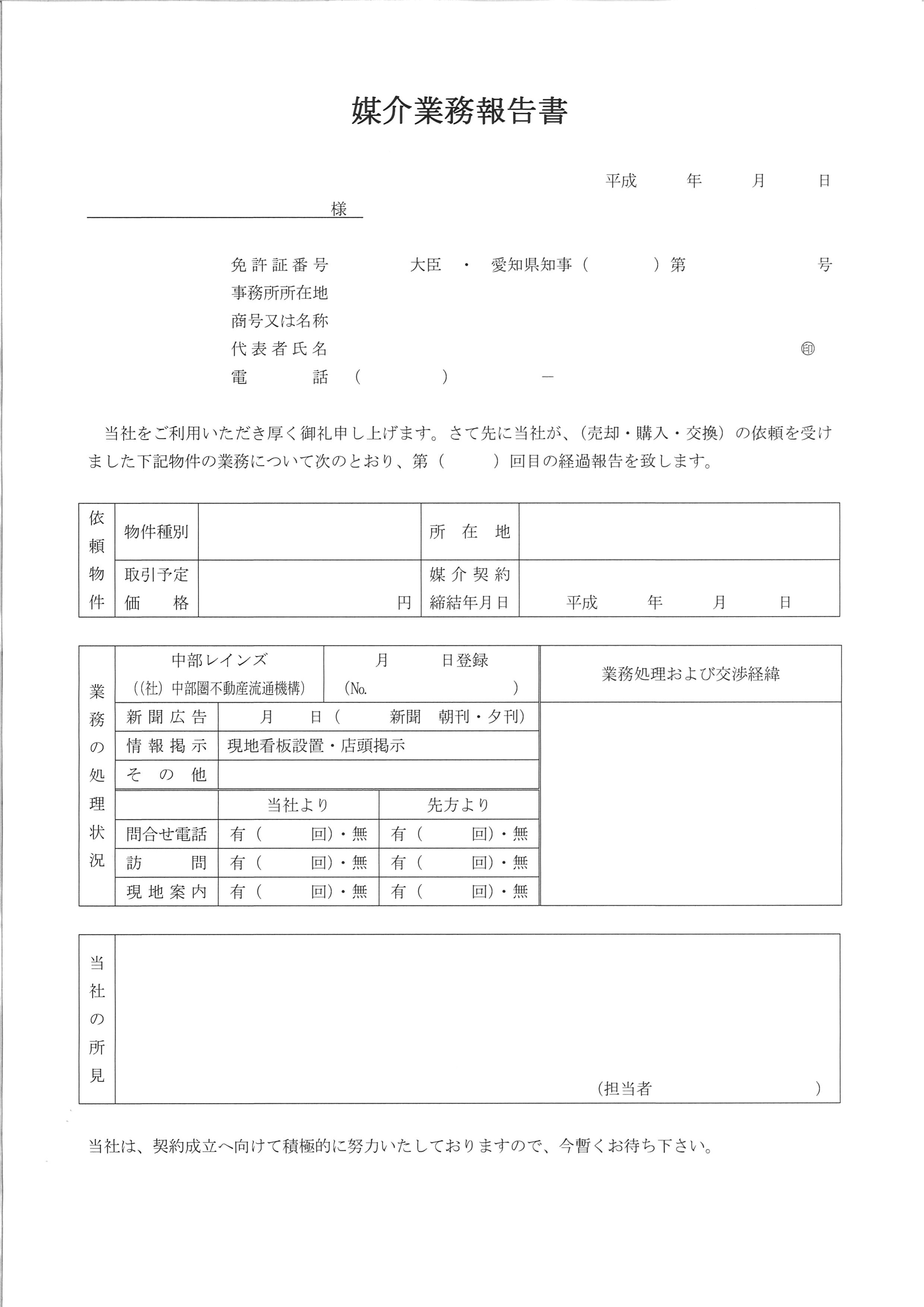 媒介業務報告書とは、任意売却活動状況や反響数などを記入する書類です。