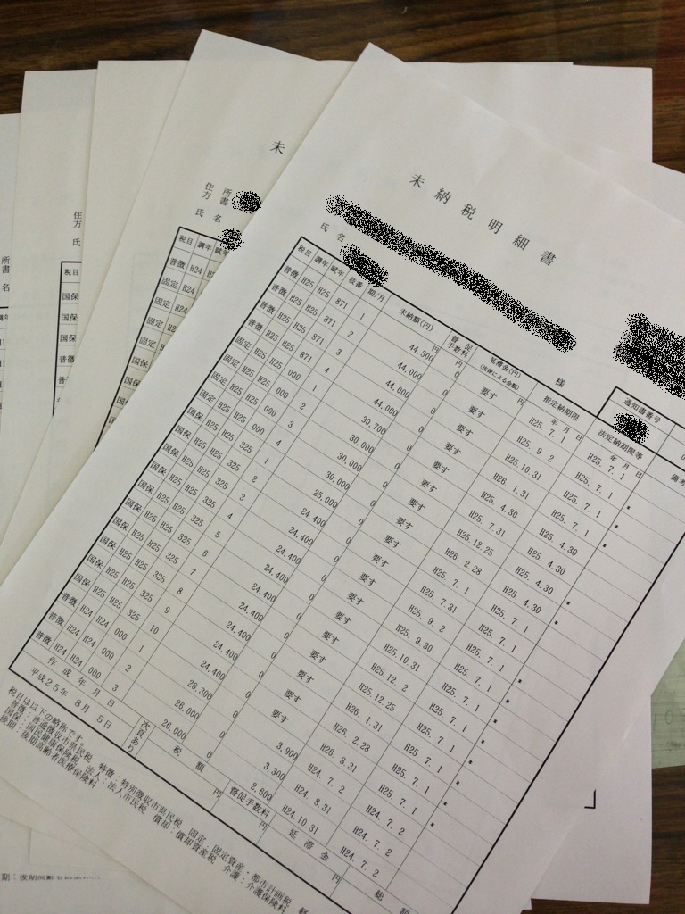 先日、税金の滞納額を調べるために、某市役所で未納税明細書を頂きました。