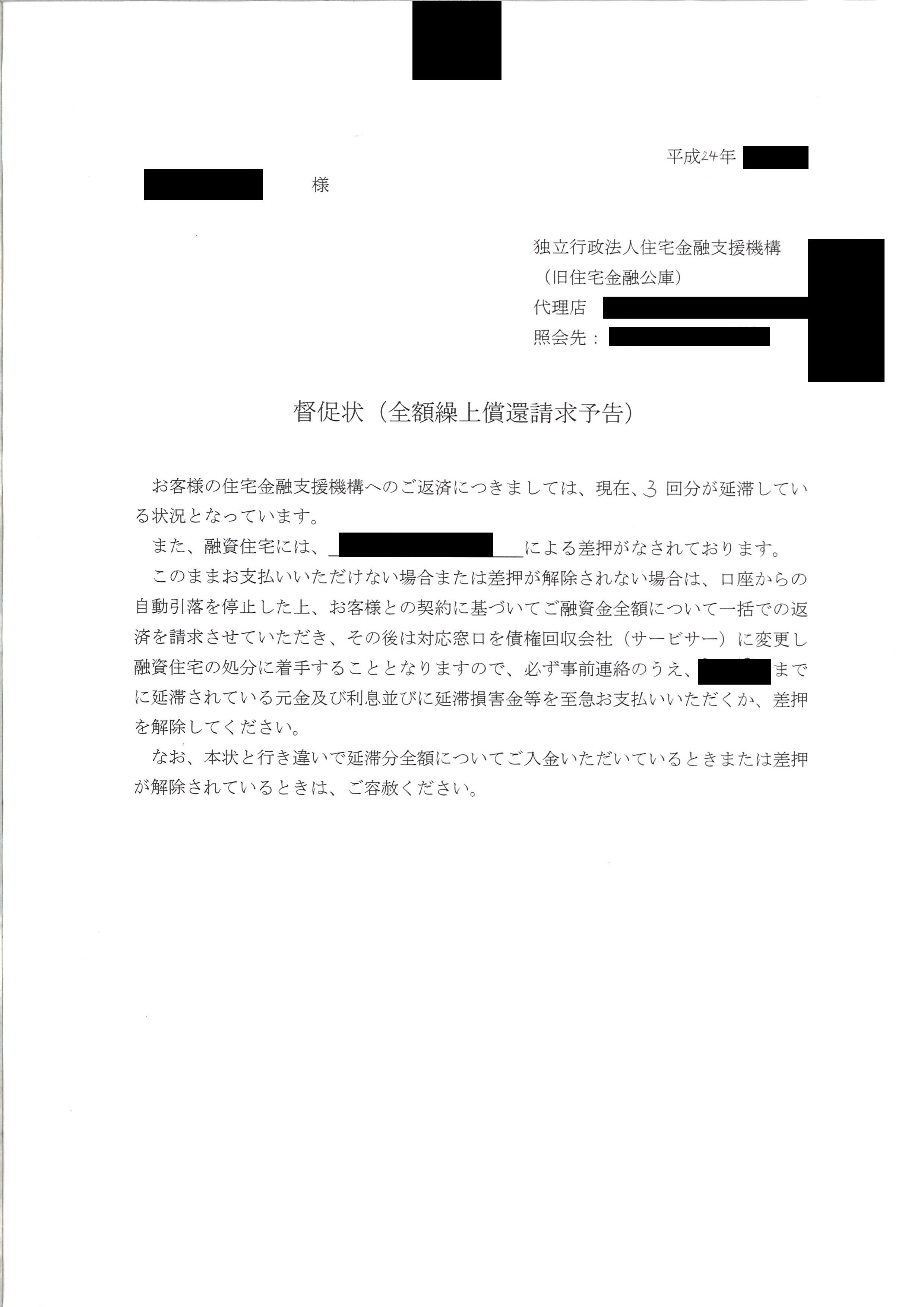 今日は、住宅金融支援機構からの督促状を紹介します。
