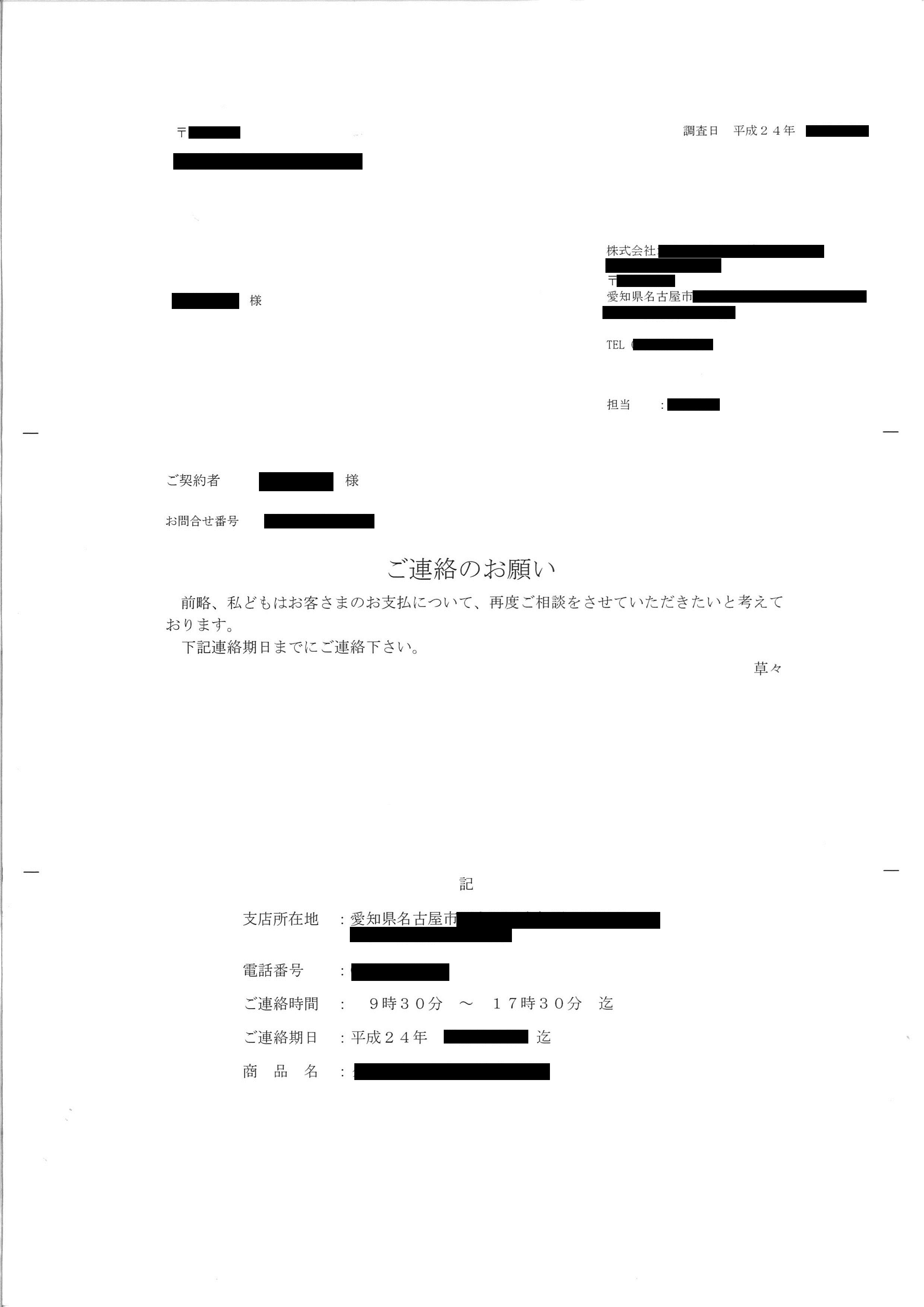 「滞納しているカード会社から手紙がきたので渡しておきます。」