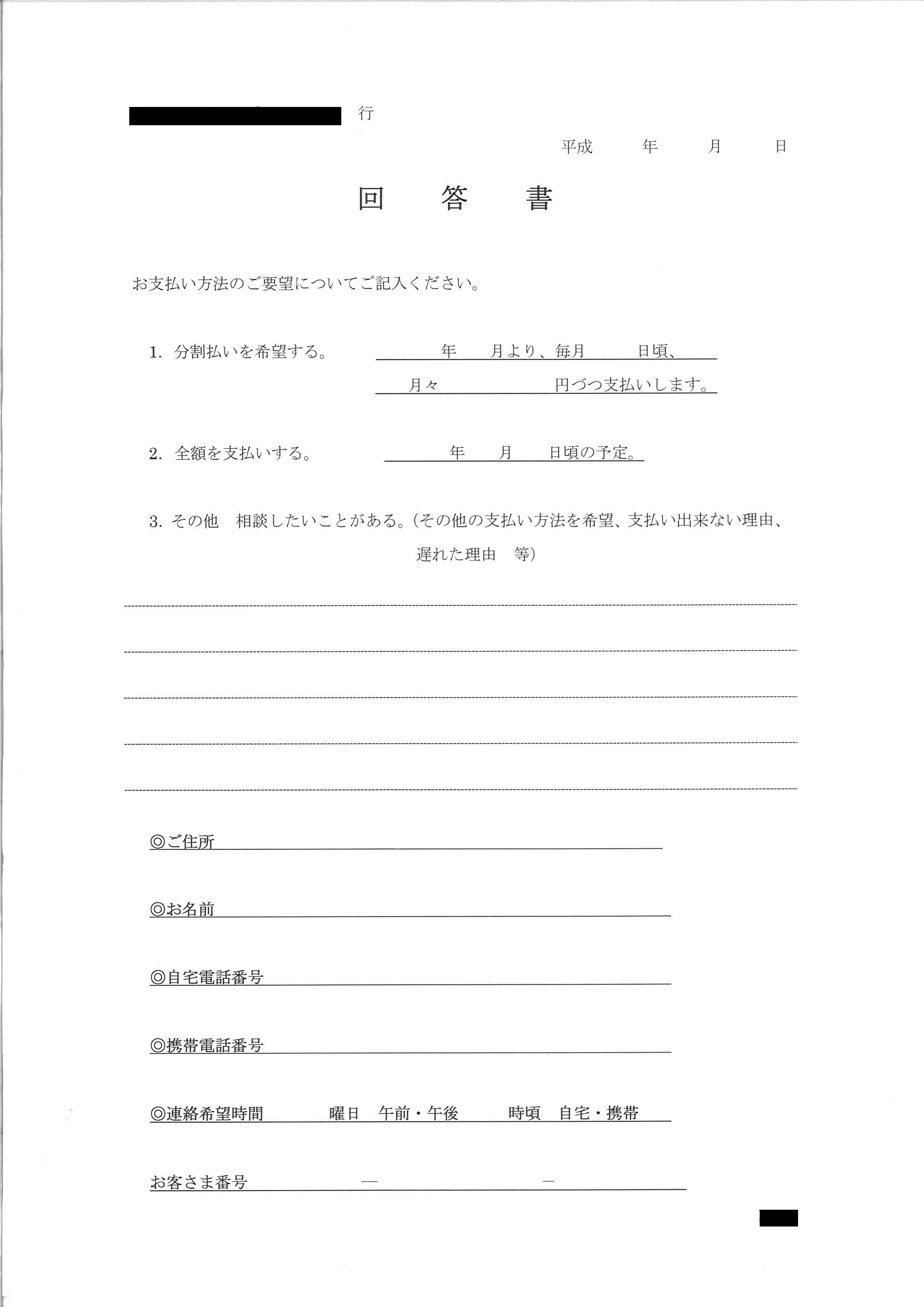 この手紙を放っておいたら、せっかく分割弁済に応じて頂けたのに、応じて頂けなくなってしまい