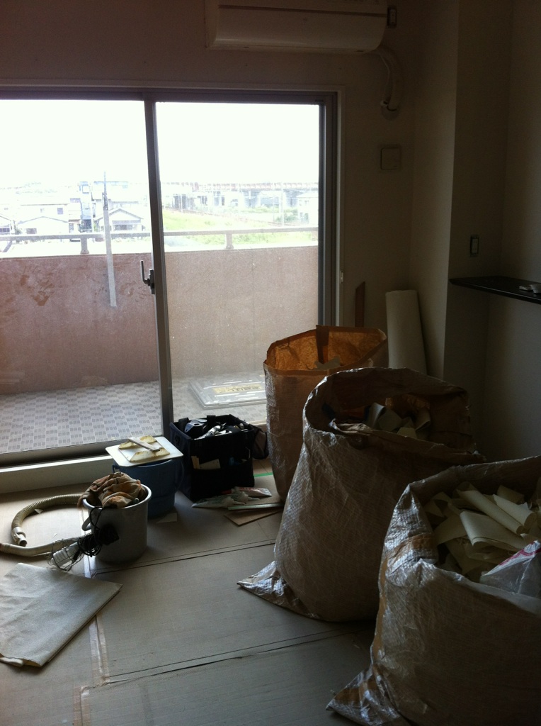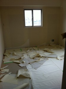 工事がスタートしたばかりなので、まずは古いクロスを剥がす事からです。