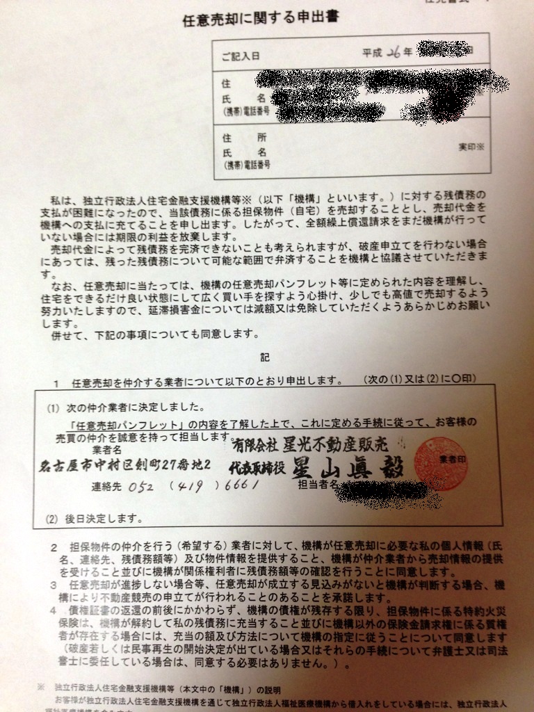 早速、債権者様に任意売却の申出書を提出致しました。