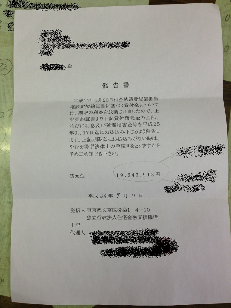 任意売却の手続を進めているお客様のご自宅に、催告書が届いたので取りに行きました。